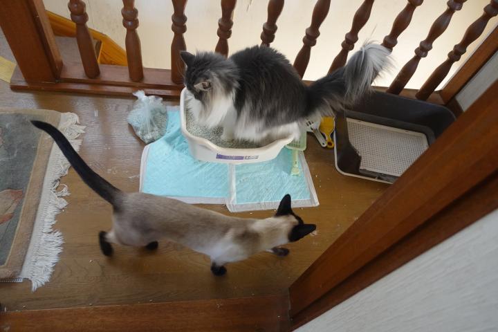 👩「ただいまー(^^)/ 買い物もしてきちゃったー(^^) えっ、ほげちゃん🐱、まだ クレートに居たのか―(^-^; お水 飲んだか?」