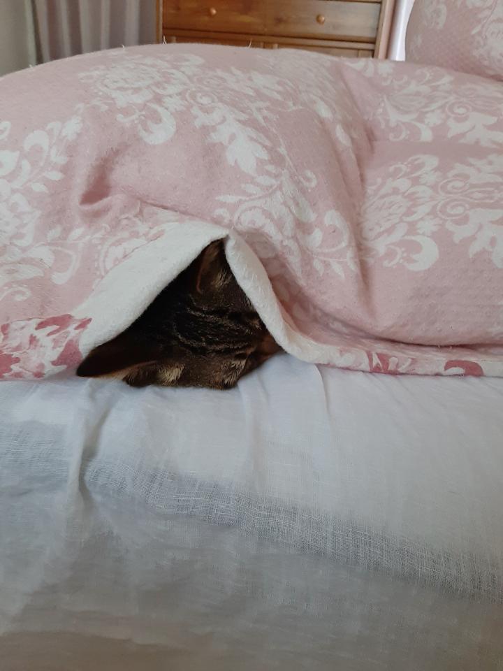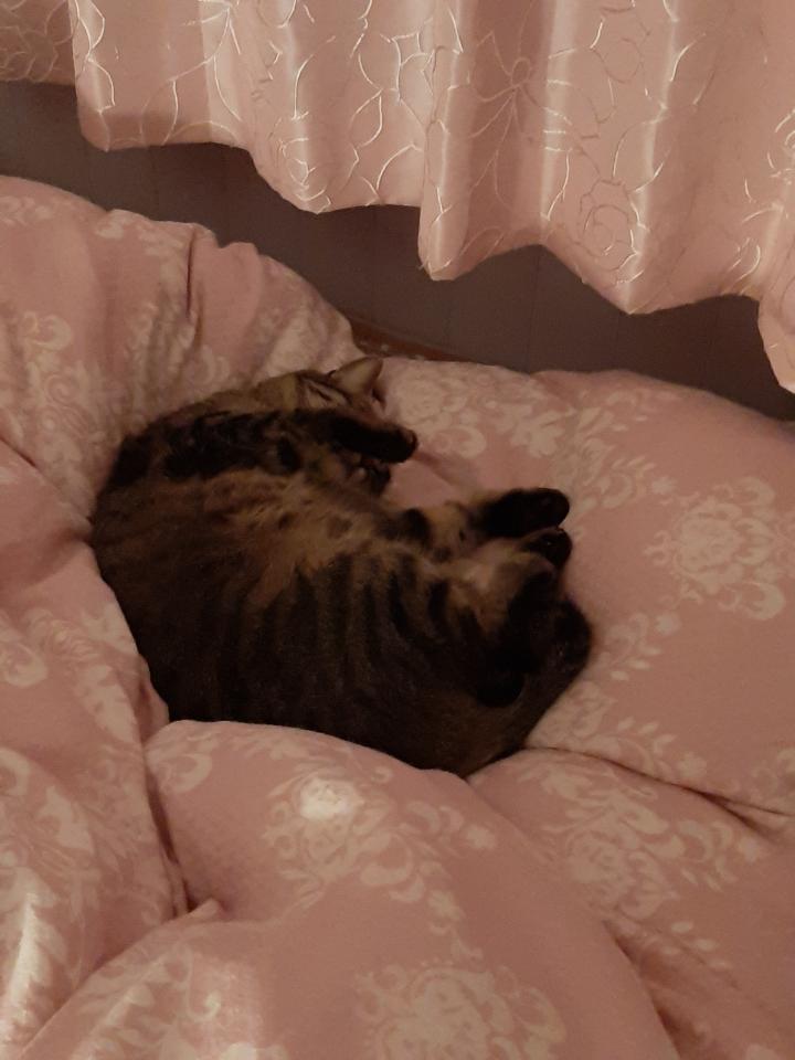 夜はキャットタワーのてっぺんで眠ってるのですが、なんか足元がもふもふする・・・と見てみるといつのまにか布団に入っていたり。6月にはいってからそんな日が何度かありました。