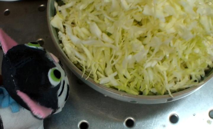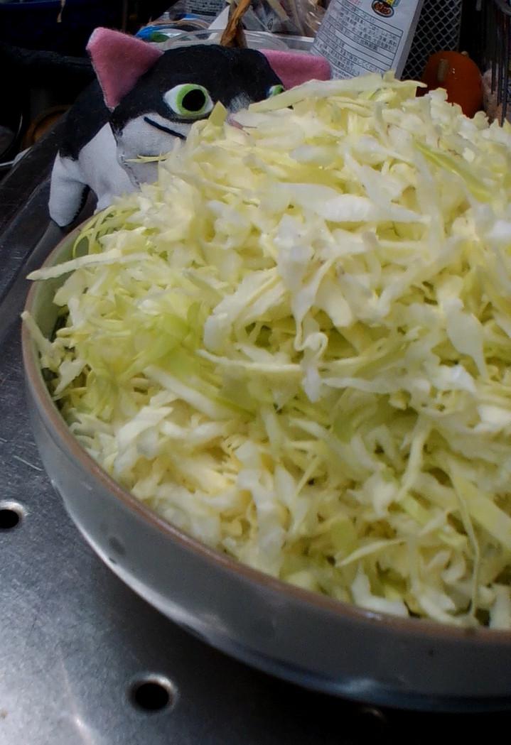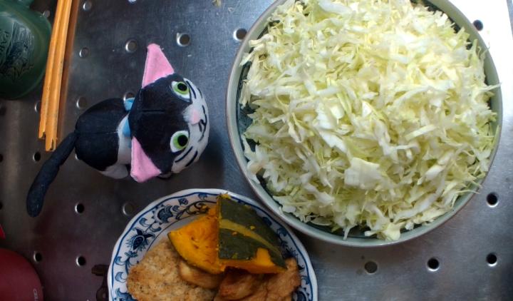 揚げ物を作ったので、付け合わせにキャベツとレタスを刻みました。