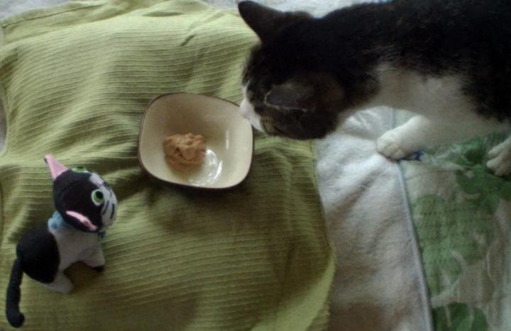 ほんまはカリカリを、もっと食べてくれたらええんやけどなぁ。