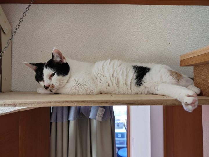病院帰宅後はいつも通りグッタリして寝ています。しかし今日はトイレに行ってから寝だしました。病院が混んでたから帰宅遅めでオシッコ我慢してくれてたみたい。より疲れたよねミケちゃん。