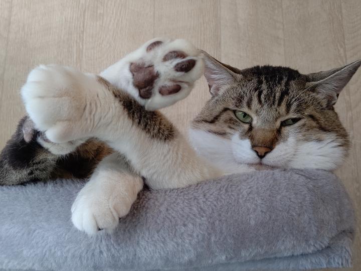 そんな過酷なお外が長かったのか、最近触れるようになった肉球はまだ硬くひび割れています。本当は何色なんだろう?