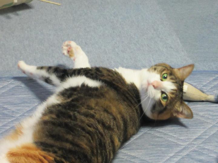 キャットウォークで立ち上がり天井付近の壁にお手々を伸ばす。