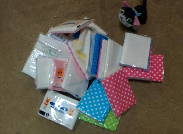 ちょっと手間ですけど、シワを伸ばしてたたんで重ねて、ティッシュの空き箱へ入れます。
