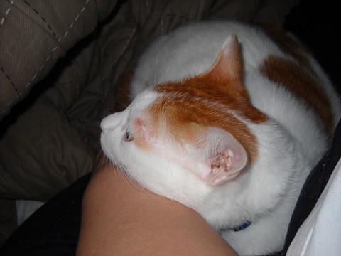 最後の写真は私の腕にアゴを載せて甘えているちびくんです。