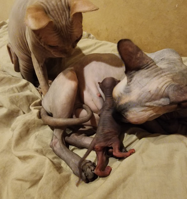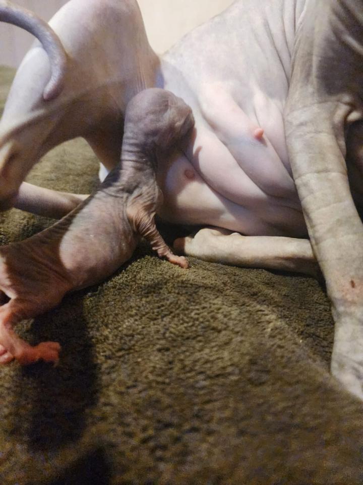 授乳には少し問題があります。子猫が母猫の乳首を吸おうとせず、母猫にもほとんど母乳が出ていません。そのため、特別なミルクを使って人工哺育することにしました。同時に、自然な授乳ができるよう試みも続けています。