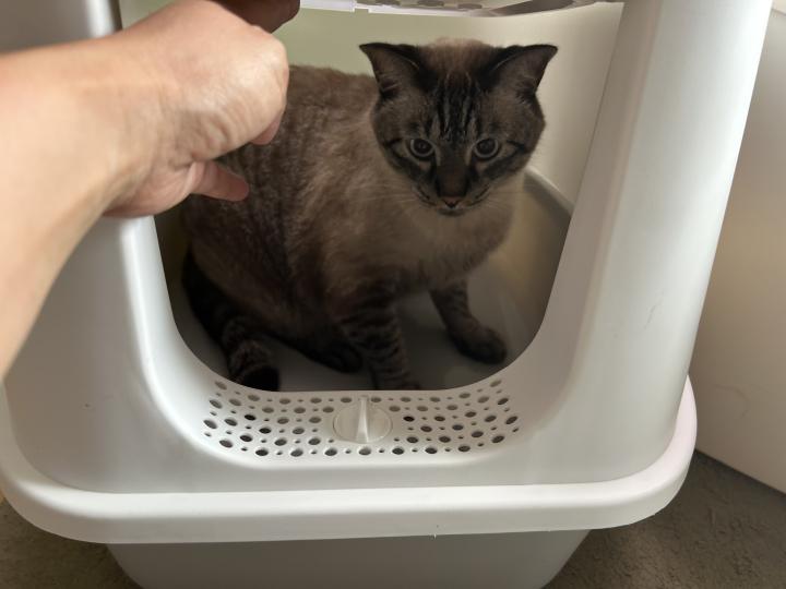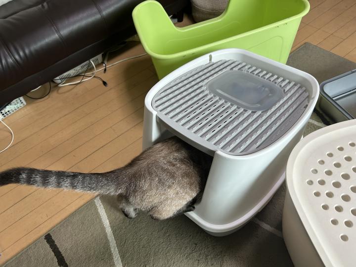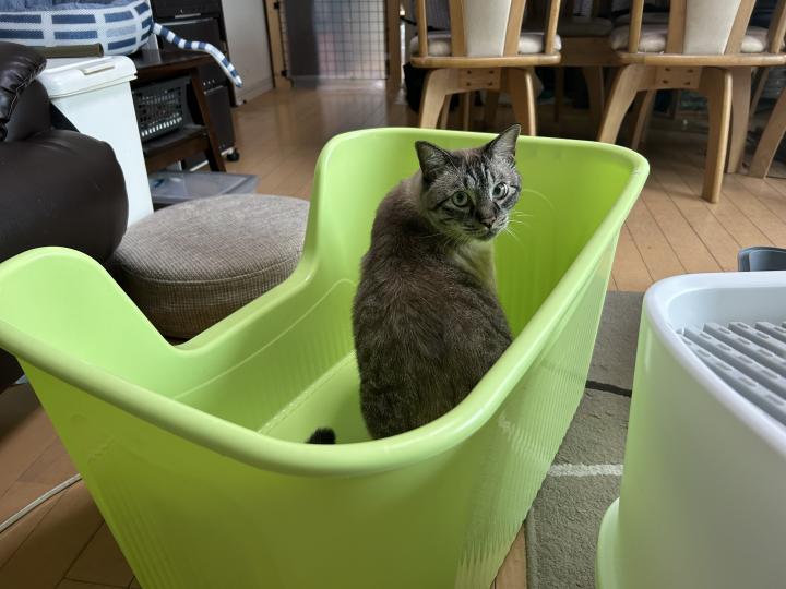 まずはリビングに入れて、砂を入れようと思ったのだけれど、この状態に😅