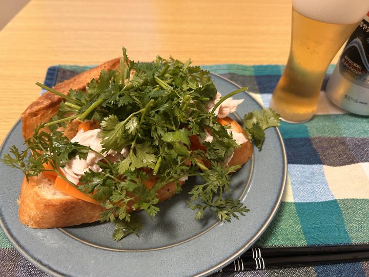 鶏肉はパクチー山盛りのバインミー風にしてペロリ