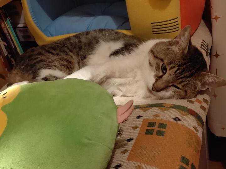さてさて、ケージから出してからはキャットタワー頂上が定位置だったネムちゃんですが、数日前から新たなお気に入り場所が。