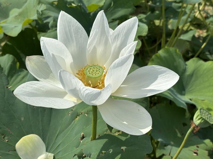 ハスなので、アサガオと同じように朝、いいとこ午前中しか咲いてません。