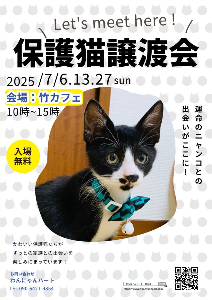 では、今週7月13日日曜日は、いつもの竹カフェで譲渡会です!お待ちしています