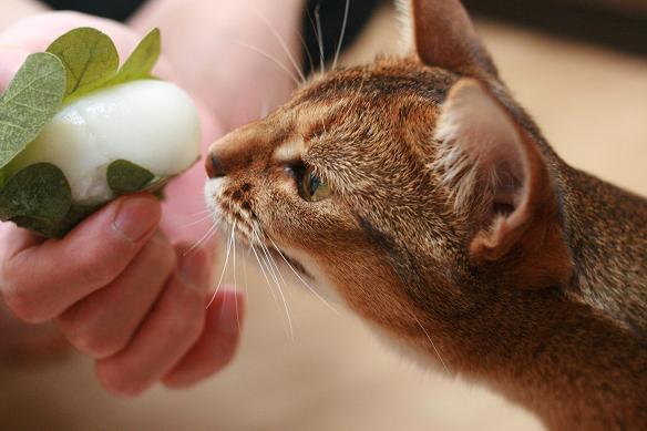 クンクン…おとんの白いのより、おかんが食べてた草餅の方が