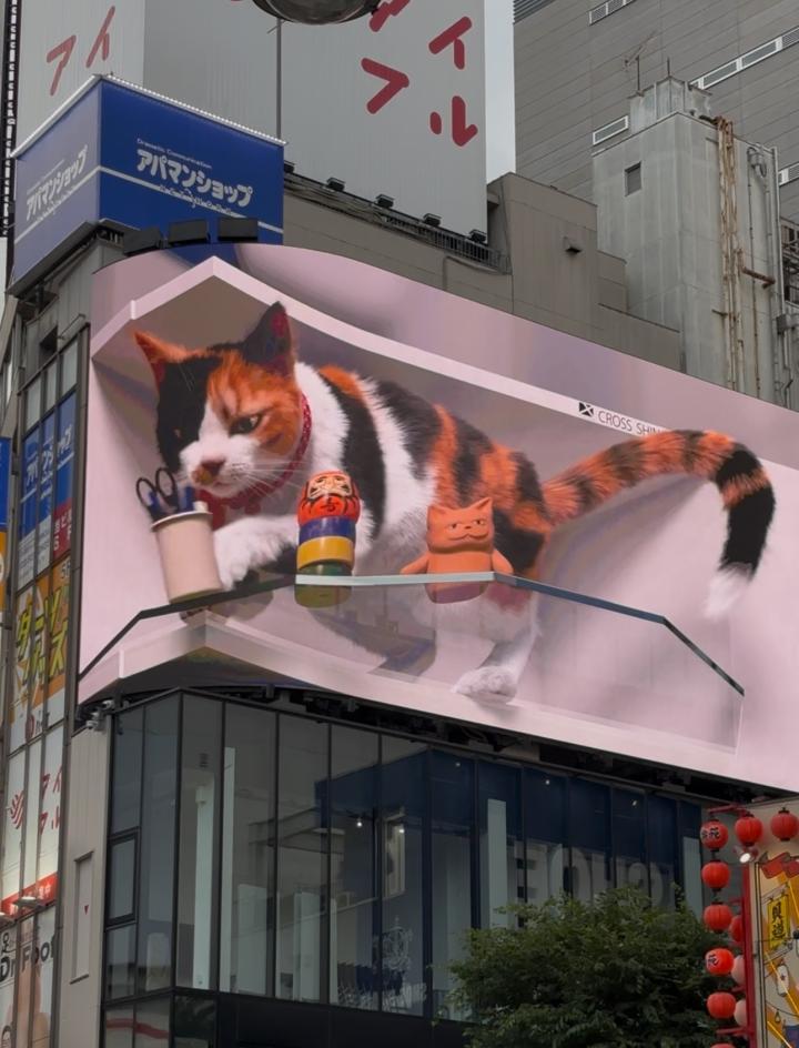 2人で新宿東口の猫(大きな三毛猫ちゃんの立体画像)をキャイキャイ言いながら楽しんで、