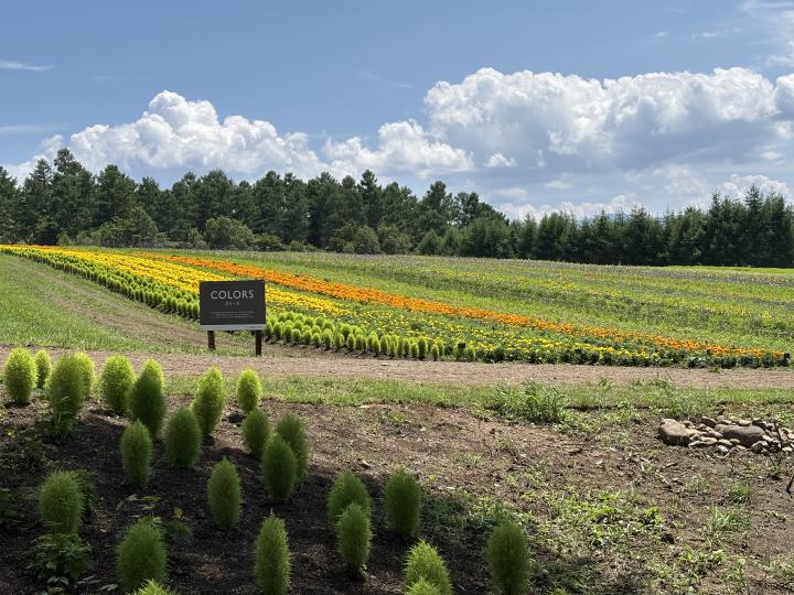広い畑の中に一面の花畑。