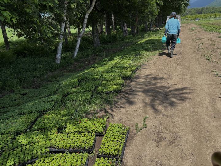 学生らしき人がこれから植える苗に水をあげていました。