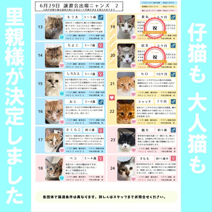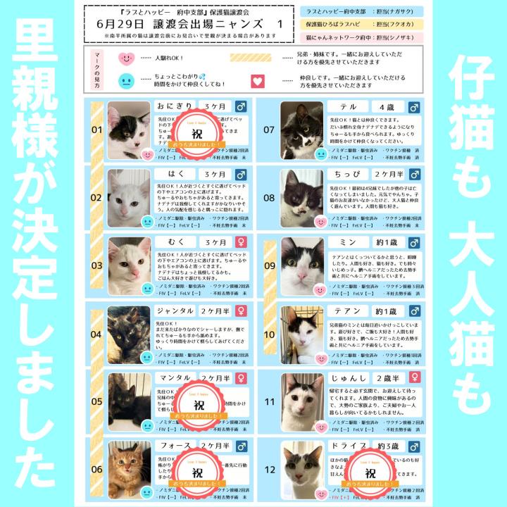 保護猫ひろばラブハピさん参加猫4匹