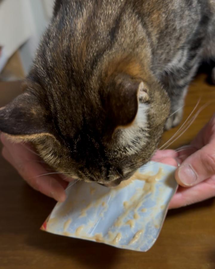 暑い日々が続きますが、はなは相変わらず毎日のちゅーる時間を楽しみにしながら元気いっぱい過ごしています。