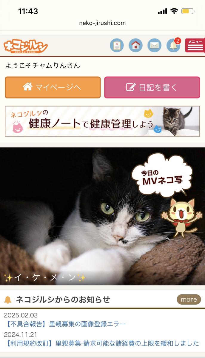 トップページでチョビの顔を確認し、その後まいにちおみくじを引いたら大吉✨🥠✨