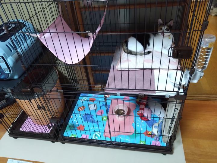 キャットゲージ下に敷くキズ防止用マットが届くのに2週間近く掛かってしまいました。