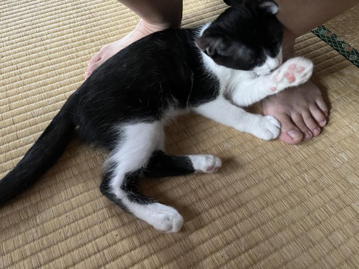 ご飯のあと、私の足に寄りかかって寝始めました。
