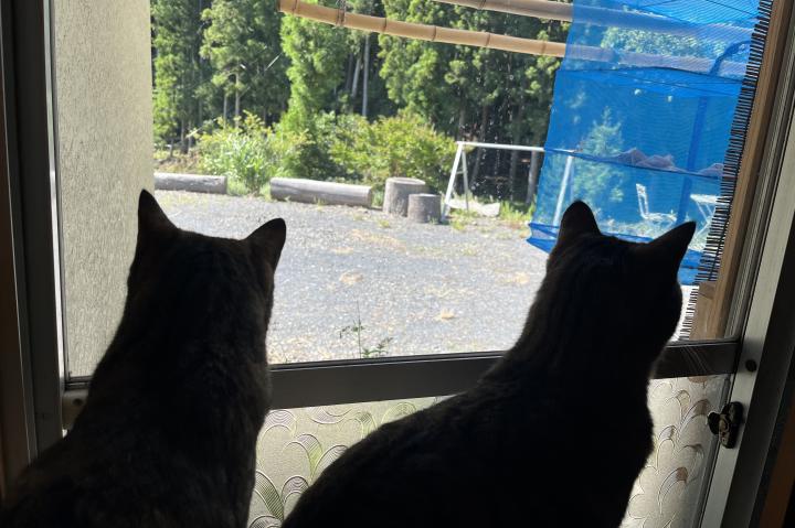 下半分は、外猫との接触防止のため、二重網戸にしてます。