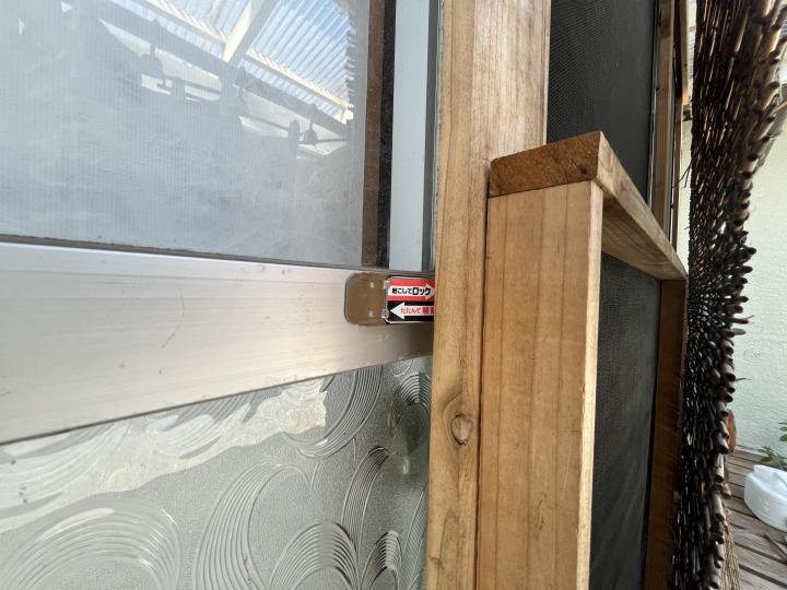 古くて歪んだ建具には隙間があり、網戸を固定していたL字金具も、緩んでいたようです。