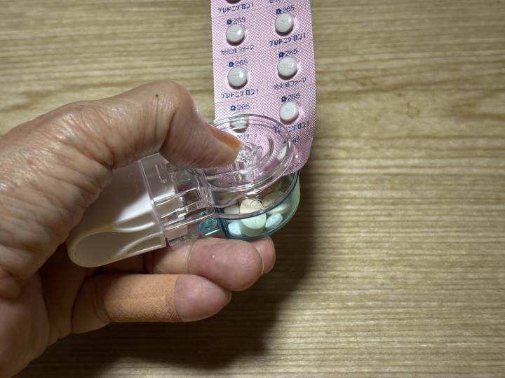 お薬をプチっと押し出して、手のひらに持ったまま次の薬を押し出して・・・なんてやってるうちにお薬コロコロ〜コンコロロ〜ってどっかへ転がり落ちて^_^
