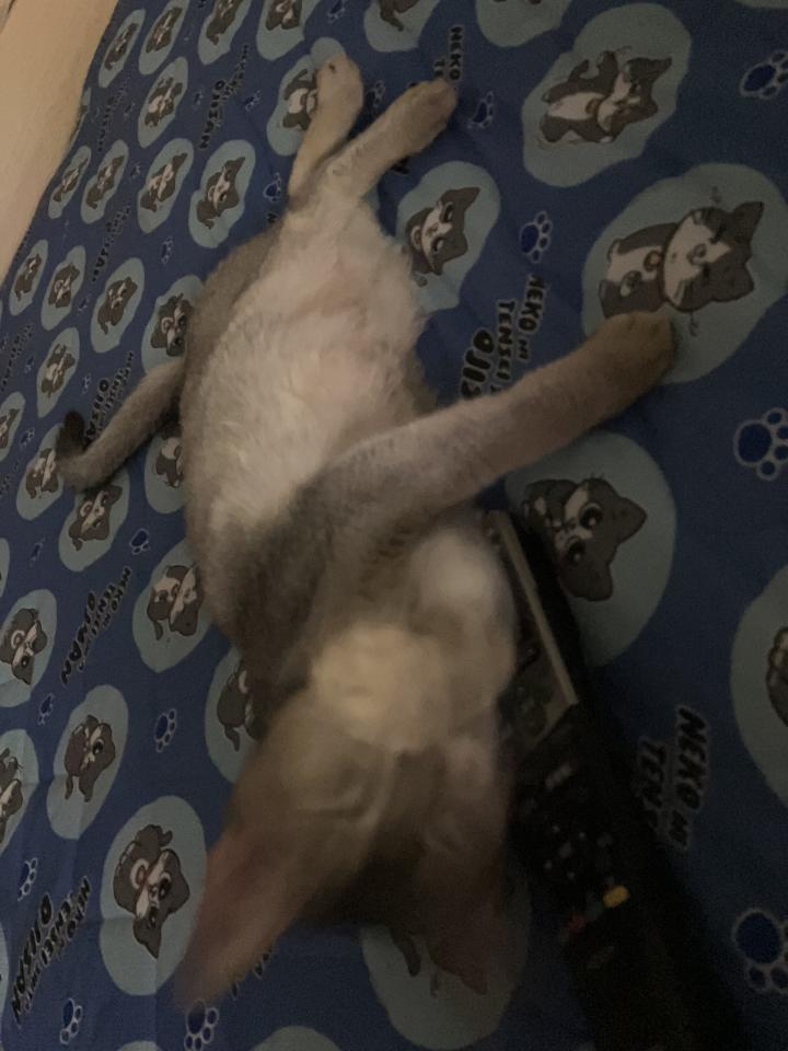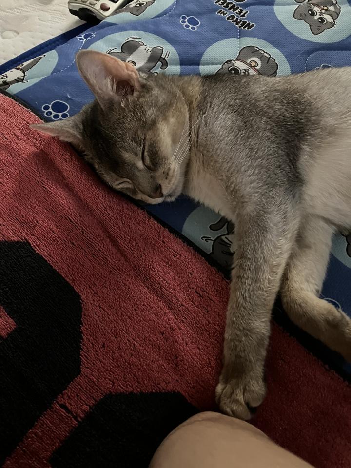 怖い夢見たのか飼い主様にタッチして寝る💤