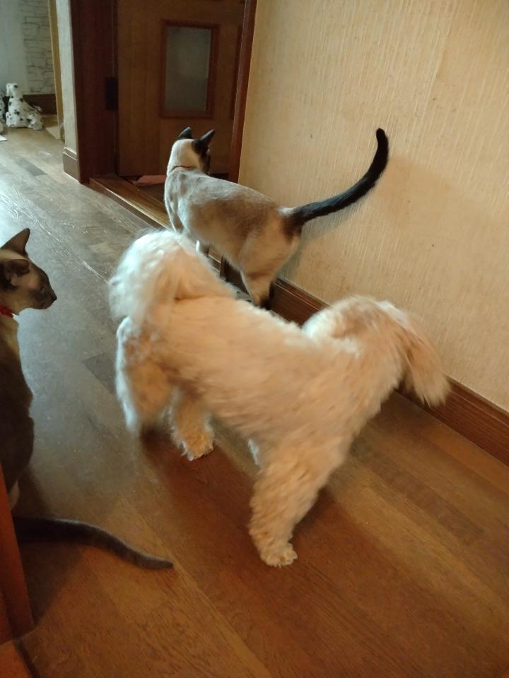 福ちゃん😼「ぴみちゃん🐶、臭くなくなったわね~(*^-^*)」