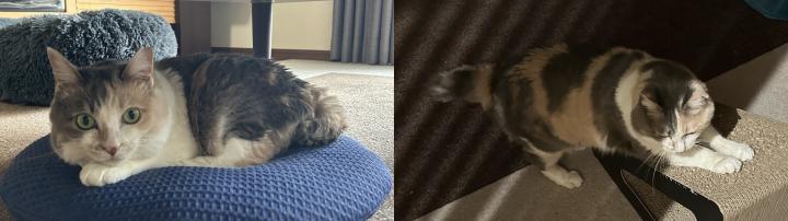 座布団でくつろいだり、帰宅を出迎えた時に爪を研いだり。