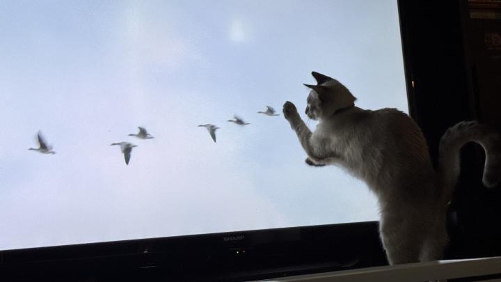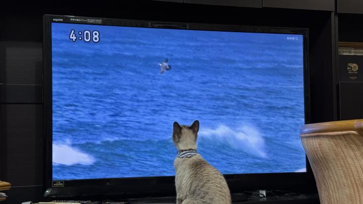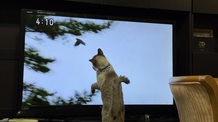 野良の頃は鳥を追いかけていたのでしょうか、シロ君は鳥の映像が大好きです。