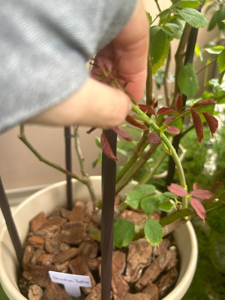 シュートとはバラの株下から出る新芽の事で、来年の主軸になる枝です。