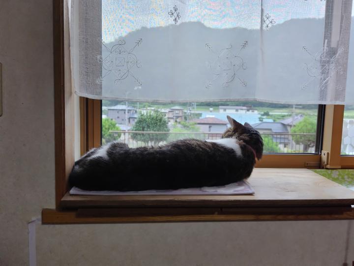 きょうは曇っていたので、久しぶりに窓辺でゴロゴロ