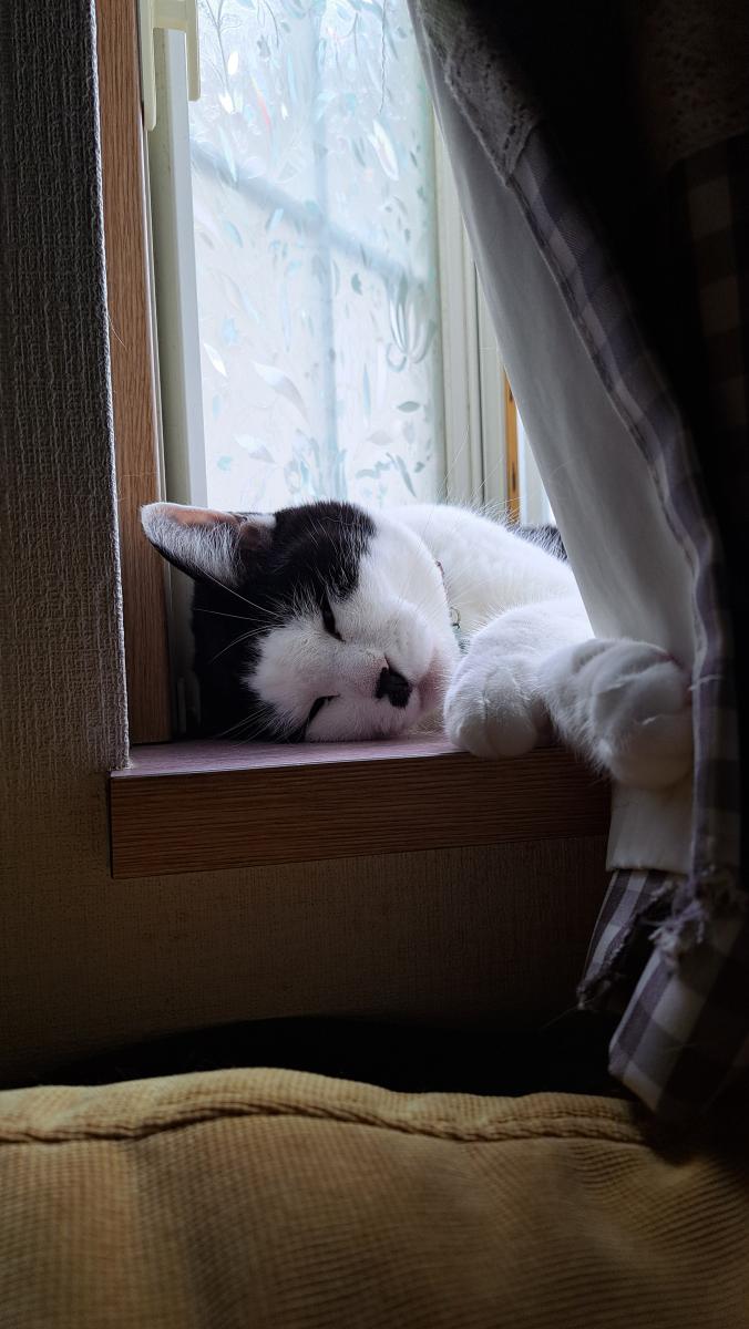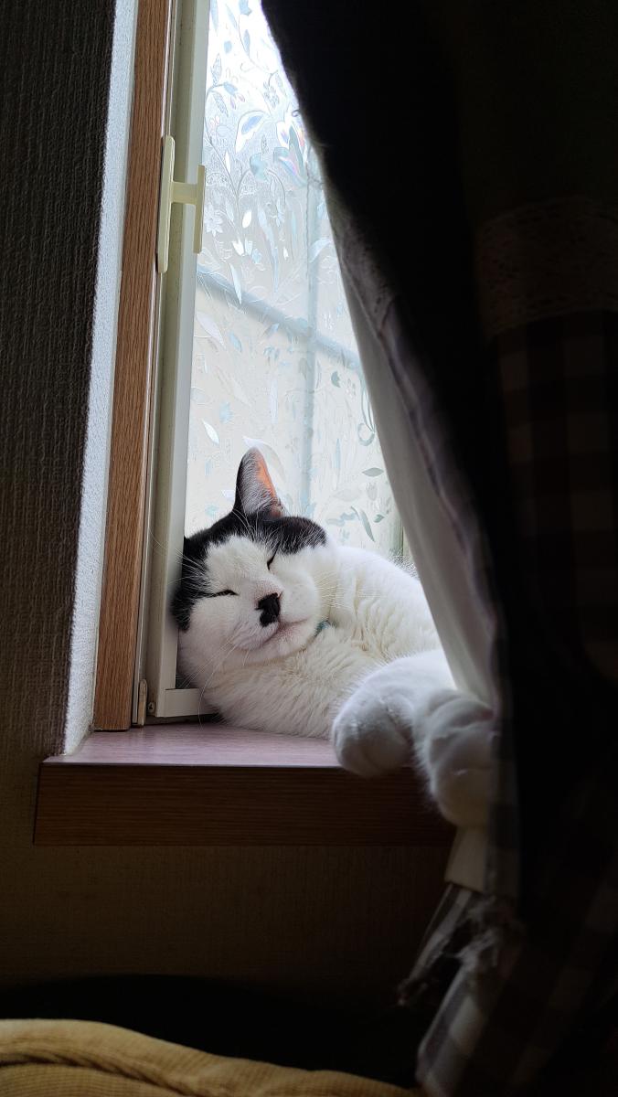 エアコンきいてる部屋より出窓で昼間は日光浴