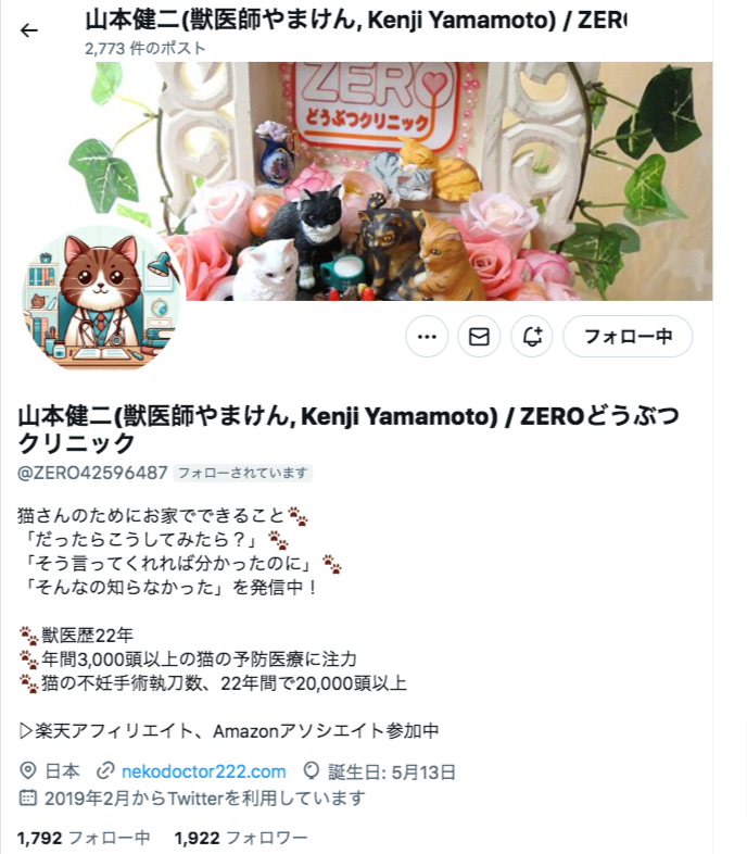 非常にプロフェッショナル、中でも腎臓病に関する発信、ご本人も愛猫のケア経験があリます。