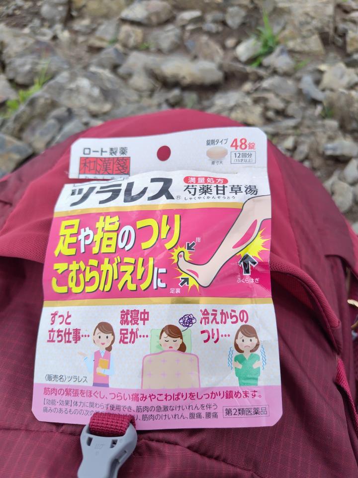 下山を開始して10分程で左足の脹ら脛が攣る。