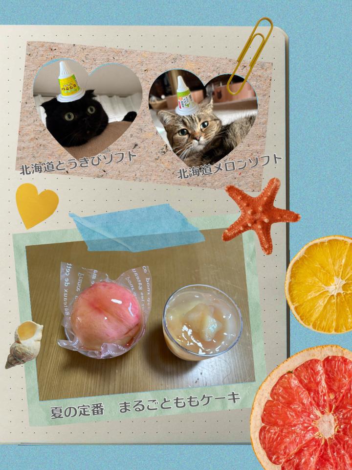 セコマの北海道とうきびソフト&メロンソフトも食べたし、『季節限定まるごとももケーキ』も食べました。