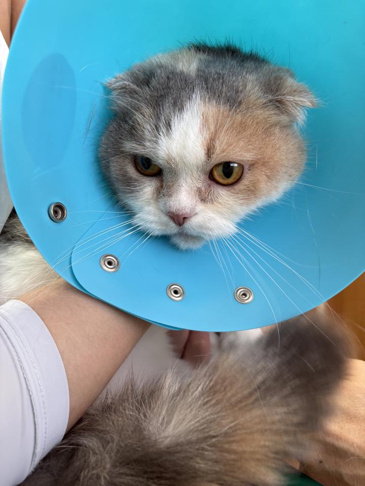 カラーをつけられてガッチリホールドされてもクネクネ体を自転させてかわすんですよ。