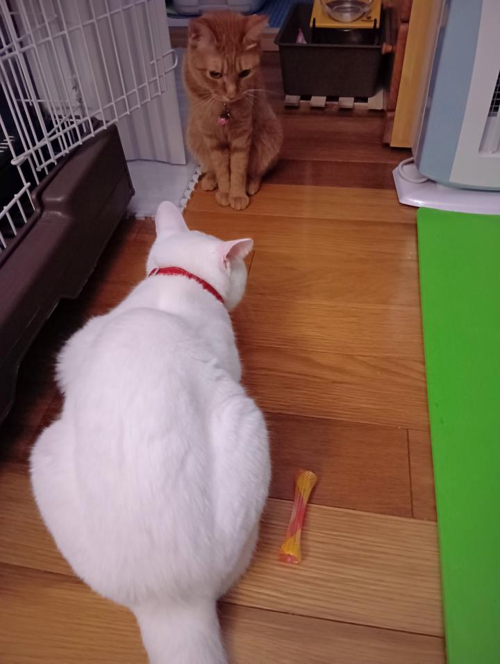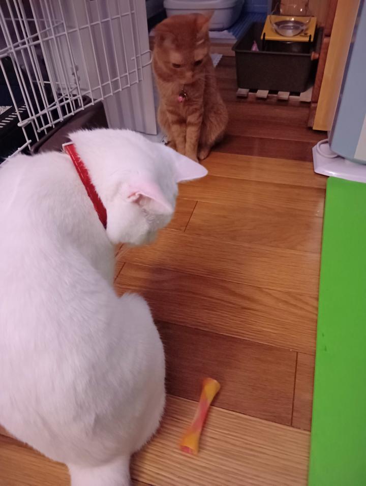 もち「この首輪、茶色の小娘と一緒の首輪だけど…」
