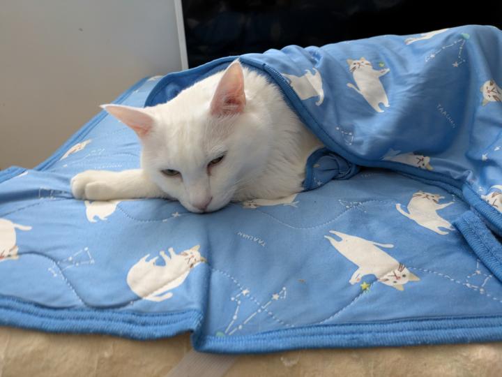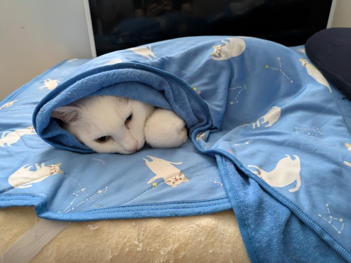 休憩時間に家でクーラーつけて休んでたら、包まってたちーちゃん。