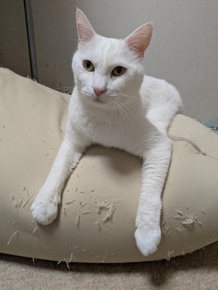 2017年6月、頭にVの字のマークがある赤ちゃんの頃、ちーちゃんが我が家にやってきました。今はほとんど消えてしまい、黒い毛が数本ある程度です。 タケオくん、王子と家族から呼ばれています。 20...