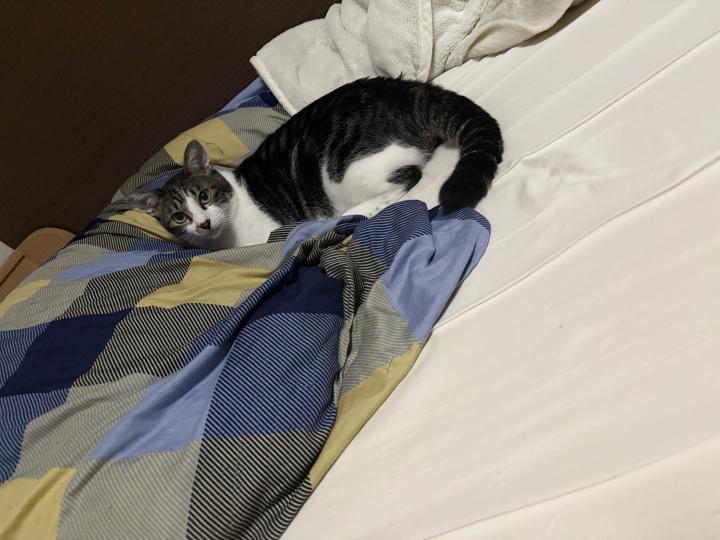 「ハチコ行こ」と言うとトコトコ一緒に寝室へ来てくれます