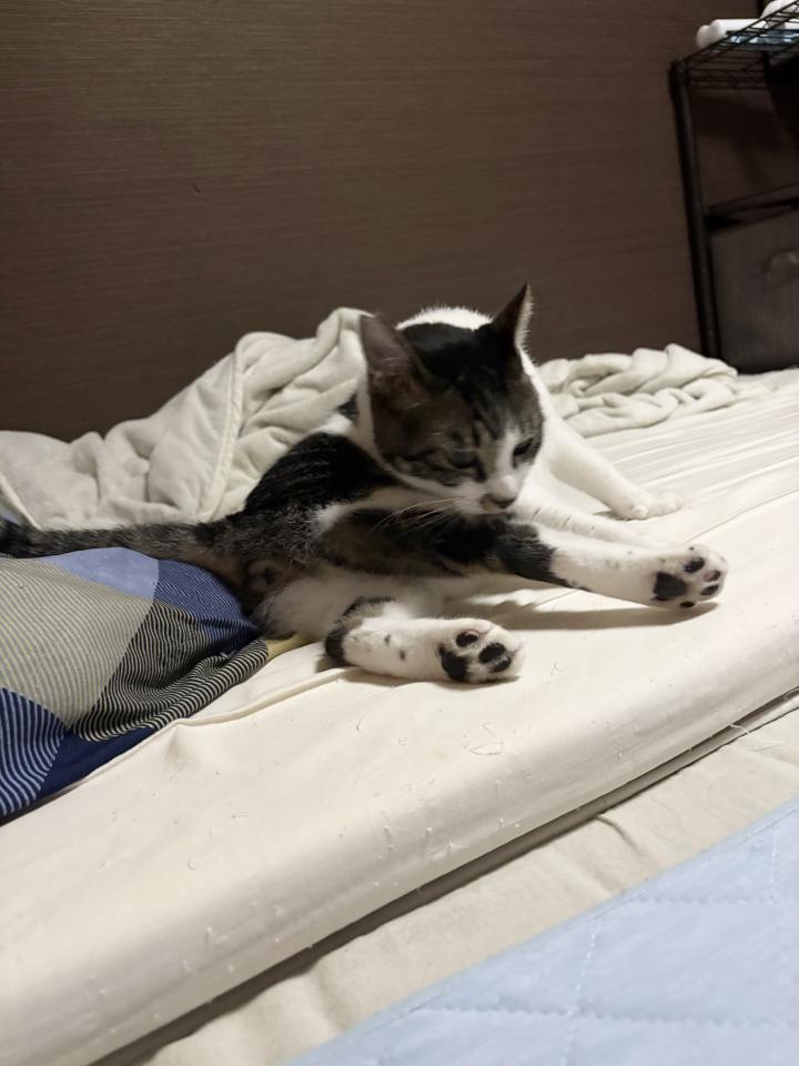 そしてほっぺたや首の上にペターンとくっついて寝るそうです😴