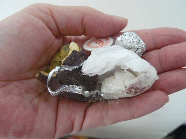 ↑アルミホイルのボール、丸めた紙、ゴルフのマーク、石焼イモの尻尾^m^