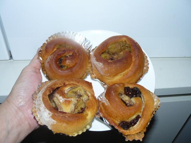 写真の上2個はおさつロール、下の2個はバナナロールです。ドリールを塗ってないので艶がないけど意外に美味しいです。。。私だけの嗜好かもしれませんが^_^;