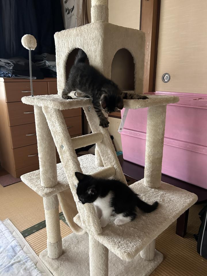 まだまだよちよち歩きにも関わらずキャットタワー上り下りして元気いっぱい!!