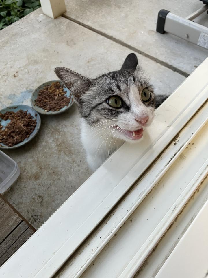 ママ猫は少し人慣れしていて、窓を開けて撫でる事ができました。