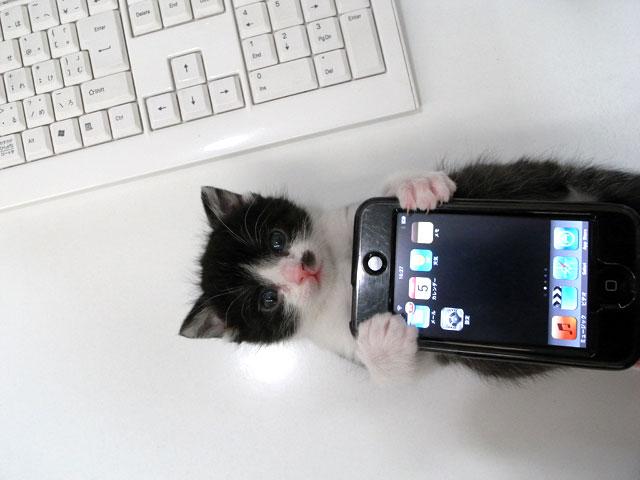 今朝、ぷくにミルクをやっていたところ、本日もジジが近寄ってきました。
