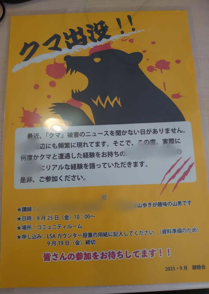 熊が職場の近所で目撃されるようになり、たまたま自治会の方と話す機会がありました。熊との遭遇の話やスマホで撮影した熊の動画など見せてたら、住民が出来る熊対策、気をつけることの話を聞きたいと言われ、軽く返事をしたところ…何だかチラシまで配布されてしまい😁