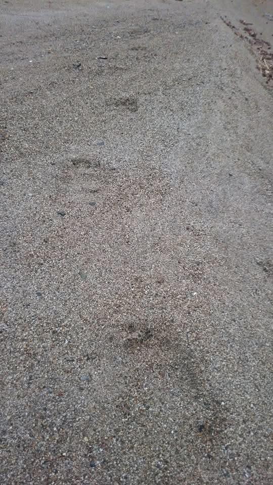 写真は見にくいかもしれませんが、渓流の砂防堰堤を登ったら目の前に熊がいて、幸い逃げてくれたのでその足跡を撮ったものです。